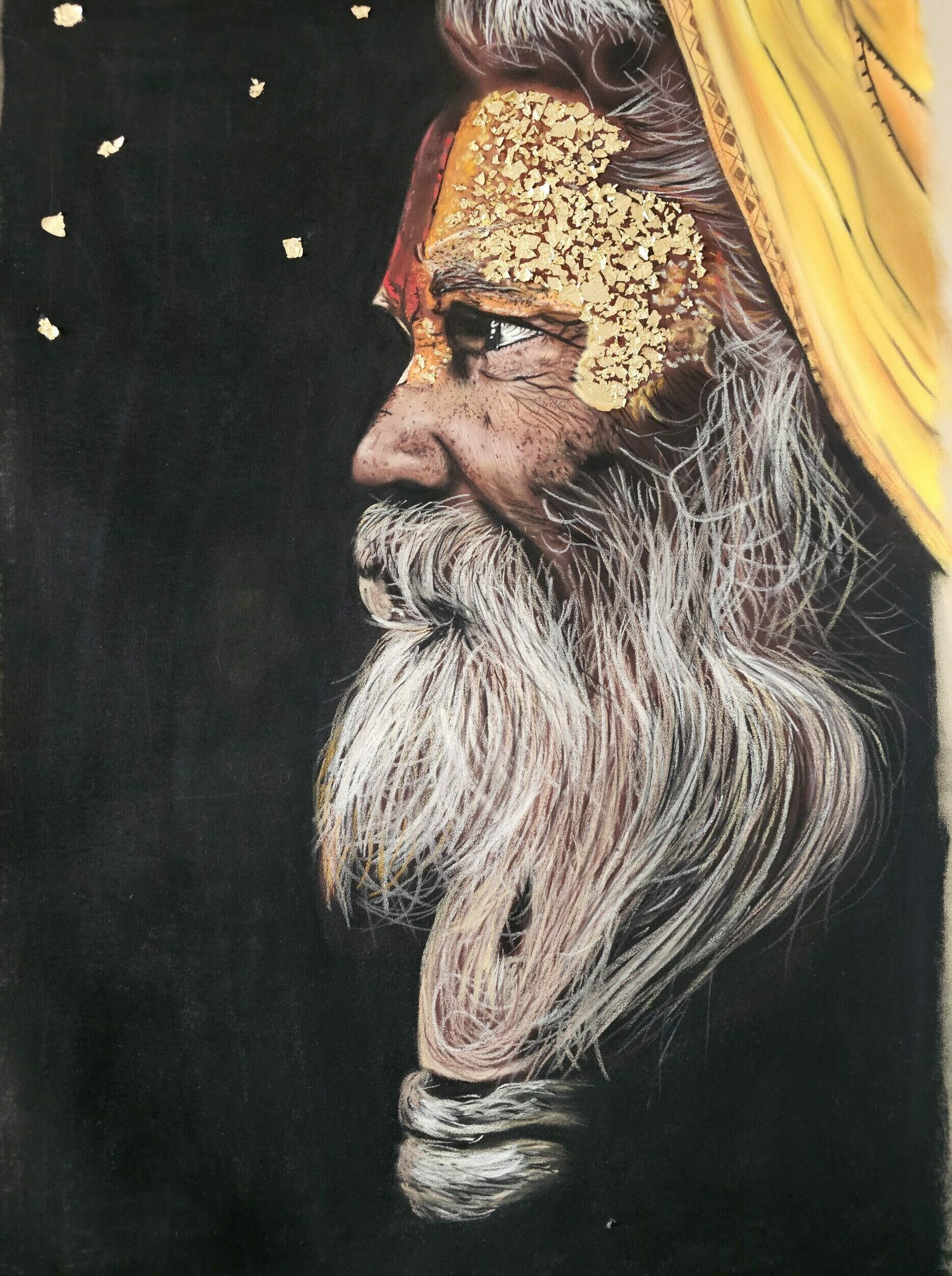 Nouvelle Frida, regard sur soi, bienveillant si possible. Remise en question, se recentrer aussi. Ce portrait éveille la curiosité ! Bonne réflexion ! Pierre noire.